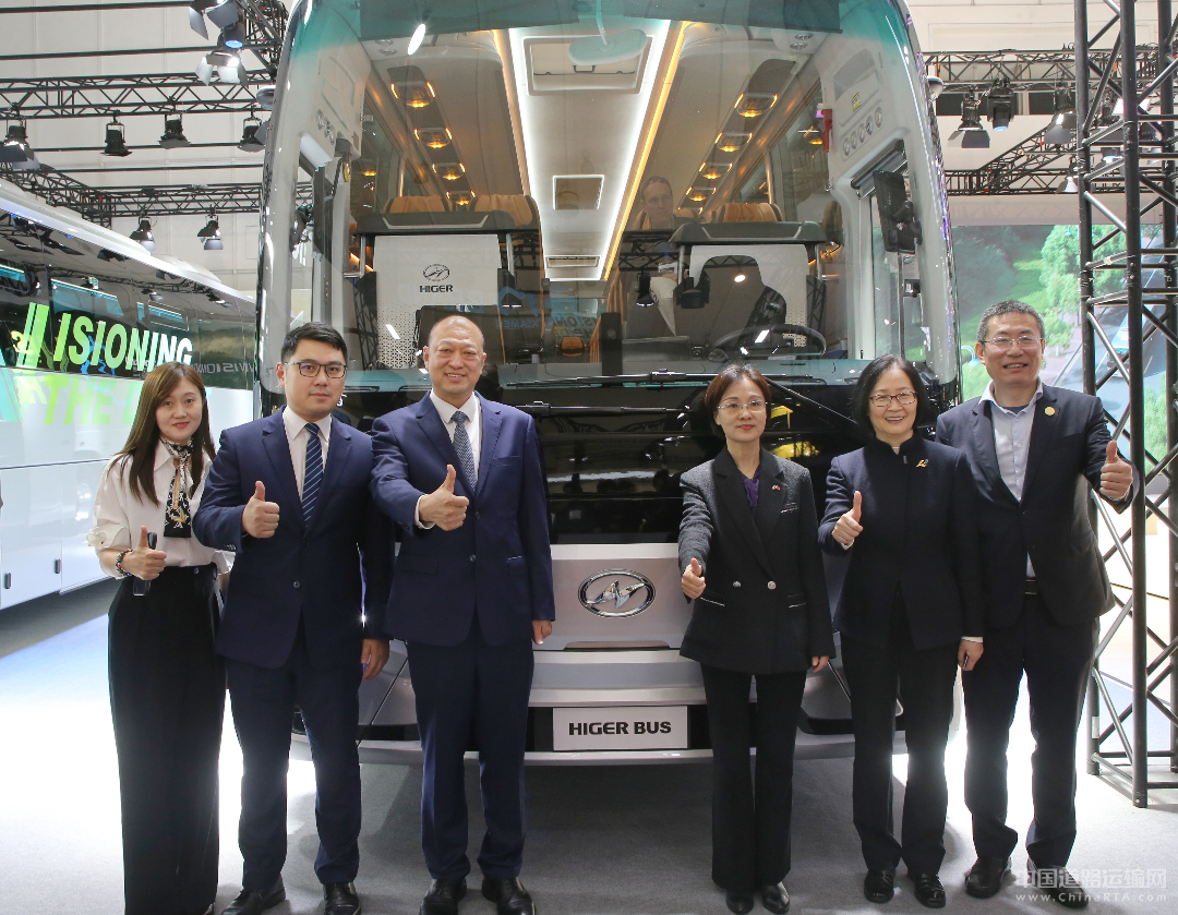 商务参赞谢亚静(右二)为海格新V系客车点赞