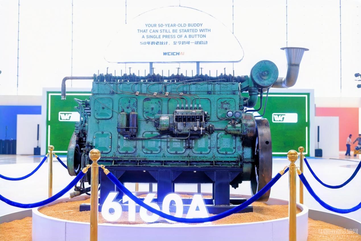 展会现场,两款刻满时光印记的机器傲然挺立,见证着潍柴品牌的厚重历史和产品技术的迭代突破。1976年3月生产的6160A柴油机已近50岁,上世纪70年代作为发电机组在山东临沂国营养殖场运行数十年,累计超10万小时。2017年“退休”重返潍柴后仍能一键启动,彰显老潍柴的品质底色。6160系列柴油机从投产到停产的60多年里,衍生出207个变型品种,累计生产近11万台,其中约1.2万台出口到越南、孟加拉、印尼等十几个国家,为潍柴在全球市场打下第一波口碑基础。
