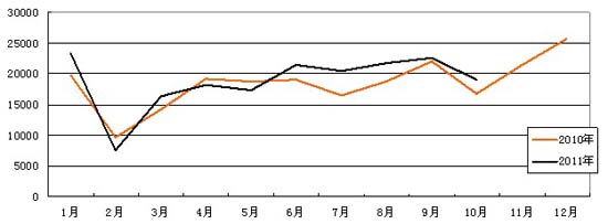 10月,中国客车统计信息网的50家客车企业共计销售客车19084辆,同比增长13.30%。1-10月累计销售客车188314辆,累计增量13508辆,增幅为7.73%,其中大型客车同比增长13.12%,中型客车增长8.02%,轻型客车增长2.94%,中、轻型客车的市场表现有所好转。