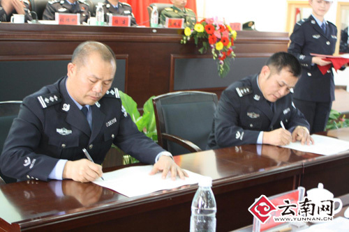 红河州公安局交警支队张文支队长与县市交警大队长签订2011年工作目标责任状