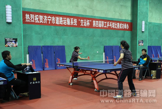 为迎接第23届省运会,加强济宁市道路运输系统文明创建工作,丰富职工的文体生活,增强职工凝聚力和向心力,展现职工精神风貌,树立交通运输系统新形象,11月2日至3日,由济宁市交通运输管理处主办,济宁交运集团协办的“交运杯”济宁市道路运输系统第四届职工乒乓球比赛在济宁体育馆乒乓球训练基地举行。来自各县市交通运输系统的 17 个代表队 96人参加了比赛。本次团体比赛采用分组单循环和交叉淘汰赛;单打采用淘汰赛;采用国家体育总局颁布的最新竞赛规定;团体比赛均采用斯韦思林杯赛制。