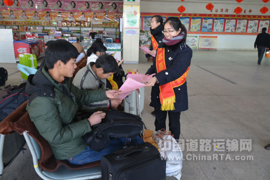 青年志愿者们身披标有“青年志愿者”的红绣带穿梭在汽车北站候车大厅,有的向旅客分发文明交通安全常识的宣传材料,并耐心讲解各类出行的注意事项;有的在站内帮助旅客提拿行包,引导旅客购票、排队安检行包;有的配合现场管理人员进行车辆疏导,维持进出站秩序;有的将热水拿到车上,为候车的旅客们送上一杯杯热水。志愿者们个个忙的不不亦乐乎,他们用贴心的服务和真诚的付出温暖每位旅客,传承者当代雷锋精神,为赣榆北站增添了一道温馨、亮丽的风景线。