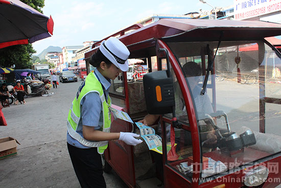 为了预防和减少道路交通事故的发生,有效整治影响道路交通安全的突出问题,营造良好有序的道路交通环境,服务全县经济社会发展,大余县公安局交管大队结合工作实际要求,以整治三轮摩托车这一乱源为突破口,通过发放人性化的宣传单、在县电视台播放近期我县交通事故警示片等宣教方式全面提升群众在三轮摩托车问题上的交通安全意识。