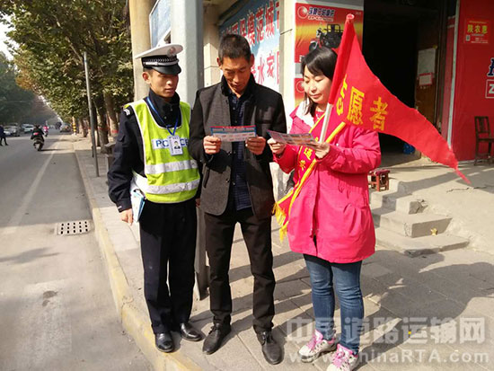 11月14日,潼关县交警大队潼洛中队民警携手文明交通志愿者走上街头开展文明交通劝导服务活动,有力促进社会文明和谐,创造文明交通人人参与、人人共享的良好环境。