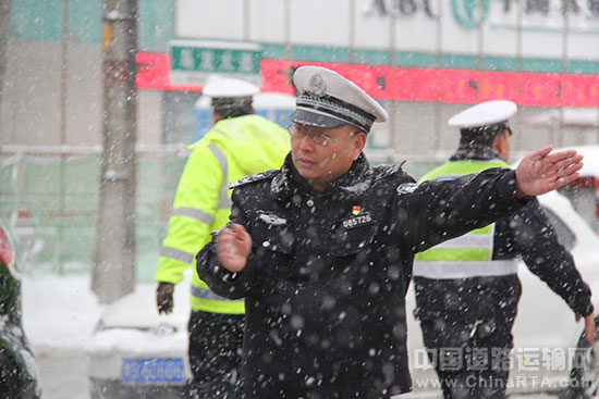 连续下了一整夜的大雪,使地面积雪厚达20公分左右,一时间城区道路上,车辆行驶困难,并存在很多安全隐患。23日早7时许,淮滨县交警大队领导和勤务中队民警冒着大雪,迅速赶到各主要路口指挥交通。此时,正值上班和学生上学时间,县城各道路车流量骤增,有的路段甚至出现堵塞。民警冒着大雪往来奔波,不停地在路上指挥疏导。遇到老人和孩子过马路时,民警主动上前搀扶,提醒他们雪天路滑,过马路一定小心谨慎。城关中队民警和辅警在北城龙宇大酒店门前十字路口执勤时,从市民那里借来铁锨,迅速铲除民政路与东西路接口处的积冰,并不时帮助打滑车辆推车。执勤交警还在一些容易打滑的路段和学校门前路段,反复提醒司机朋友一定要减速慢行,和前车保持安全距离,不要紧急制动,不要急停猛拐。民警的衣服淋湿了,手冻僵了,但是大家全然不顾。过往市民和司机见此情景,纷纷对民警称赞。