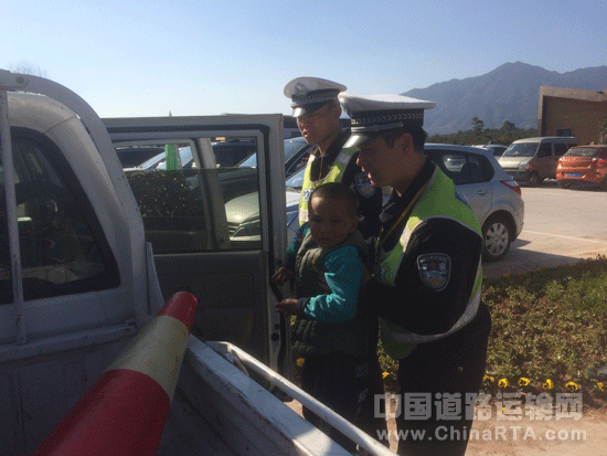2月8日大年初一,大余县花卉示园人头攒动,上午10时左右,323国道黄龙旱田路段车来车往。忽然,大队副教导员卢江斌发现花卉示范园路段,一名3岁左右的幼儿站在国道中间哭泣,南来北往的机动车、摩托车从孩子的身边呼啸而过,卢江斌立即冲上去,一把将孩子抱到了安全地段。从孩子模糊的表述中了解,他是随从奶奶来参观花卉园景,不知怎么就找不到奶奶了,在询问联系方式无果的情况下,卢江斌与执勤交警张捷只好把孩子抱上车,根据孩子的手势指引,半加猜测,辗转将孩子送到家人手中。当孩子的爷爷接过走失的孩子时,激动得热泪盈眶,感激之情溢于言表。