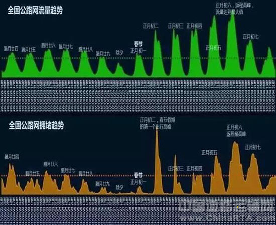 春节假期,全国公路网的客运和货运流量明显低于平日,但从初七开始,客运、货运流量会呈现逐渐回升的趋势。