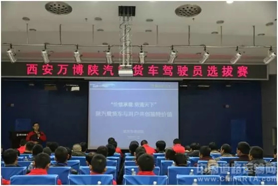 本次选拔赛于2月6日-7日,在陕汽商用车产业园区内举办,参加的领导有西安万博工贸有限公司总经理赵建平、副总经理李吉涛,陕汽载货车项目经理汪翔,以及前来竞聘的55名卡车司机。比赛共两天,第一天早上为参观陕汽总装厂,使用户更加了解陕汽车的装配流程,对产品质量也更加放心。之后,陕汽载货车项目组的培训师就车辆配置、性能、使用、服务保养等进行了详解讲解。