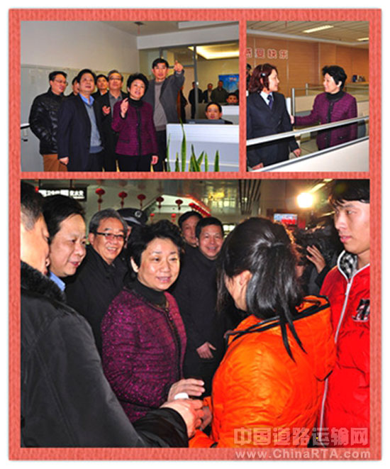 在运调中心,黄莉新与运调人员一一握手,向大家表示慰问并提前祝大家新年快乐!随后黄莉新又询问了公司对于运营车辆的实时监控情况,指出春运高峰安全最重要,一定要加强安全监管。胡蜀江详细汇报了公司的三级安全监控体系,听到公司在春运前对车辆检查做到部部过堂,并对车辆做到100%监控等黄莉新表示满意,最后再次嘱咐公司要把好安全关,确保万无一失。