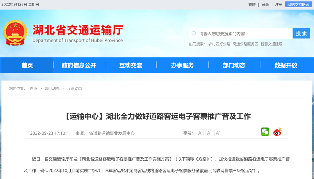 2022年9月底前,湖北将完成电子客票系统和站务系统升级!近日,湖北省交通运输厅印发《湖北省道路客运电子客票推广普及工作实施方案》(以下简称《方案》),加快推进湖北省道路客运电子客票推广普及工作,确保2022年10月底前实现二级以上汽车客运站和定制客运线路道路客运电子客票服务全覆盖(含联网售票三级客运站)。