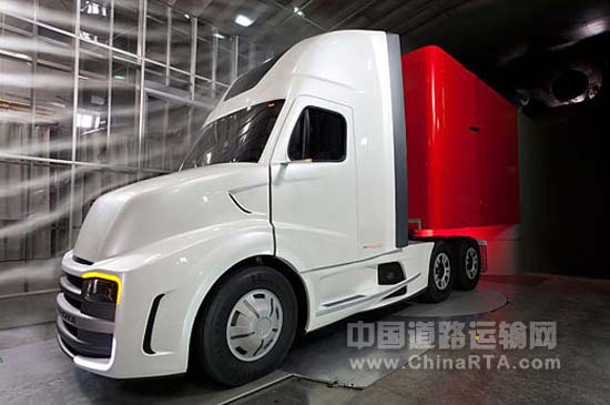 美国卡车制造商Freightliner将于这周在美国肯塔基州举办的卡车博览会中发布一款概念卡车。这款概念卡车革命性的创新在于以往卡车一尘不变的前部设计,其设计的理念是让这部卡车更加符合空气动力学,降低风阻。