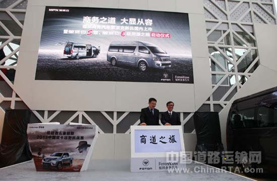 福田汽车集团商务车事业本部业务总监兼本部长王朝云与福田汽车集团品牌副总监兼福田商务汽车事业本部副本部长霍焱启动商道之旅