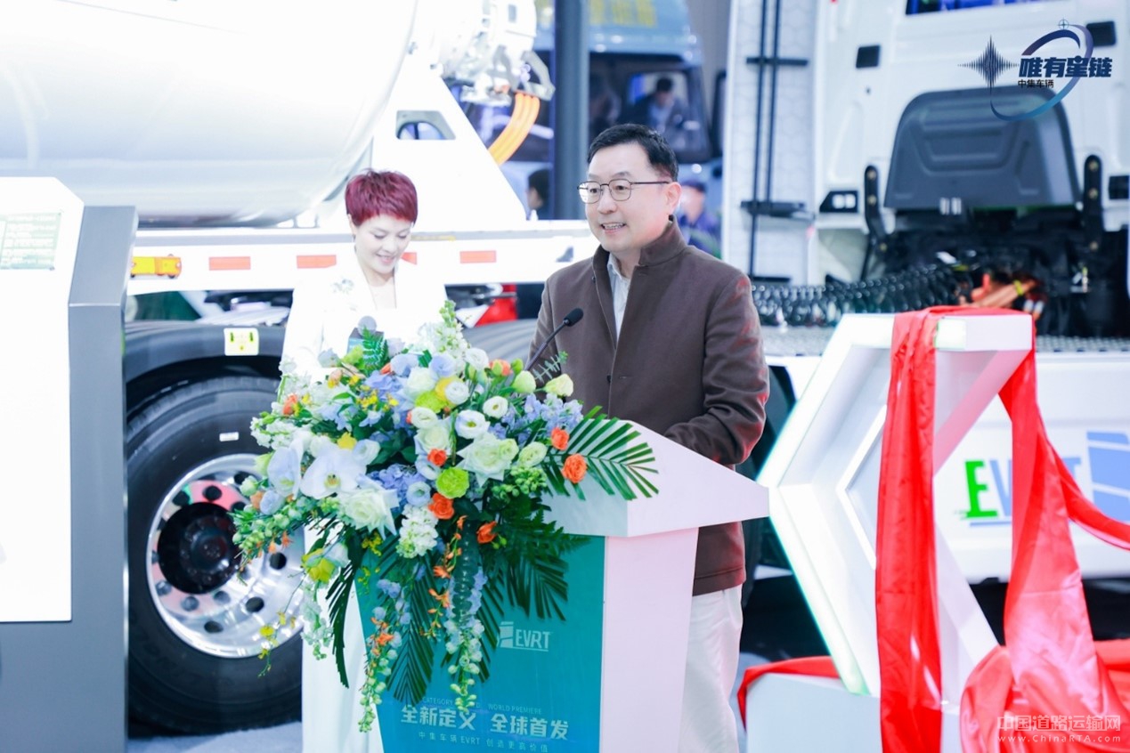 中集车辆董事长兼CEO李贵平在EVRT展台开场致辞