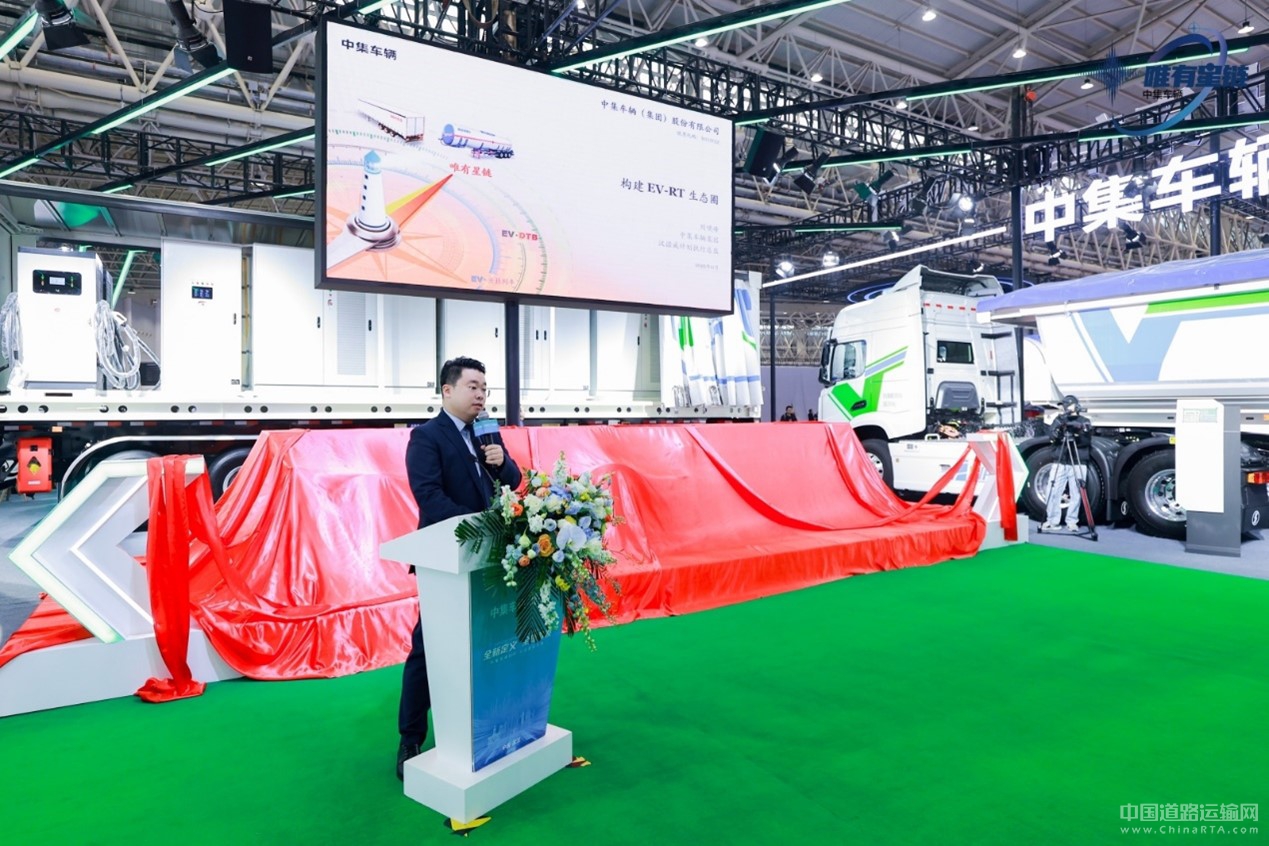 2025年11月10日下午,中国国际商用车展正在武汉国际博览中心如火如荼地举办,中集车辆(股票代码:301039.SZ)EVRT展台(纯电动头挂列车)携全球首发成果隆重亮相,正式发布纯电动头挂列车EV-RT生态圈及全套解决方案,系统展示公司EVRT 技术的前沿突破与产业布局。中集车辆领导、行业专家以及合作伙伴齐聚一堂,共同见证这一里程碑时刻。