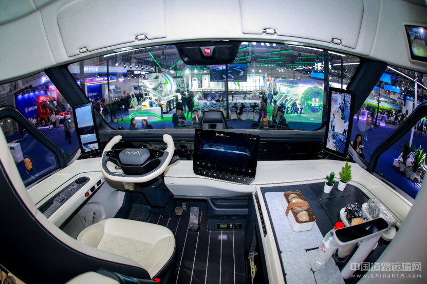轻量化与能效优化的双重突破,是H49能够脱颖而出的关键因素之一。通过动力链、储氢系统与底盘的深度集成,以及碳纤维材料的创新应用,H49成功将整车自重控制在10吨以内。同时,0.35的超低风阻系数设计,进一步助力整车能耗降低。在“质量-性能”双优设计理念的加持下,车辆满载最高车速可达120km/h,为提升物流运输时效奠定了坚实基础。不仅如此,H49预埋的L4级高阶智驾系统,支持高速自动驾驶、编队行驶等十余项智能功能。这些创新不仅有效减轻了驾驶员工作负荷,更能通过智能化的车速控制和路线优化,进一步提升运营效率与经济性。