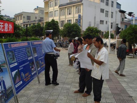 一是以开展冬季交通安全宣传为主线,提高群众交通安全意识。大队结合季节性变化和冬季行车特点,以“五进”宣传为平台,以冬季车辆易发生故障而引发事故的各种情况为宣传重点,依托学校、车站、客运企业、农村集市、车管、事故处理和违法处理窗口等人员密集场所,加强阵地宣传和媒体宣传,为冬季交通安全管理工作营造良好的社会舆论氛围。
