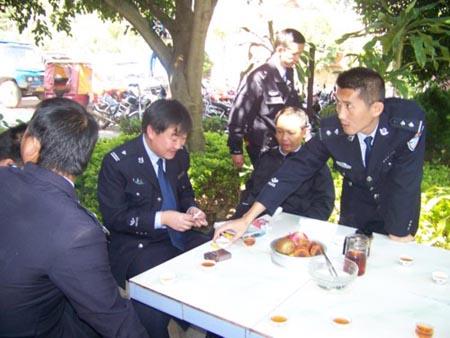 到达勐省中队后,沧源交警大队施泽欧副大队长和勐省中队朱洲中队长热情的介绍了勐省中队的内务管理情况,并陪同周副大队长一行实地观看了中队的档案类文书材料、案件归档及装备管理等,参观后两队民警以座谈的方式就车辆管理管、秩序管理、交通事故处理、交通违法处理等4个方面的工作经验进行了交流。