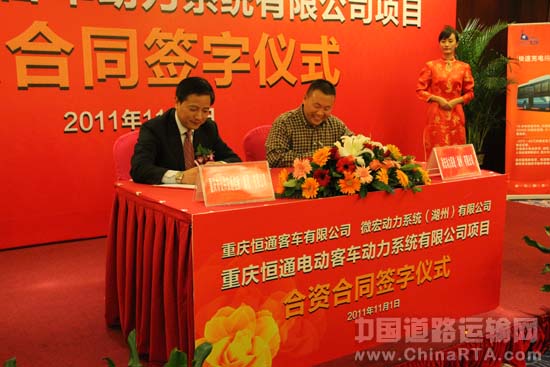 2011年11月1日,重庆恒通客车有限公司与微宏动力系统(湖州)有限公司共同出资组建的重庆恒通电动客车动力系统有限公司项目合资合同签字仪式在重庆天来大酒店隆重举行。重庆市国资委副主任陈思聪、渝北区区长黄玉林、市科委副主任梁震、市经委汽车处处长陈世维、开投集团董事长丁纯、开投集团总经理雷军、市公交集团总经理黄维乔、微宏动力系统(湖州)有限公司董事长吴扬、恒通客车总经理唐乾栋等领导及新闻界媒体代表共同见证了这个具有里程碑式意义的时刻,重庆恒通电动客车动力系统有限公司主要致力于新能源客车系统的研发和制造。
