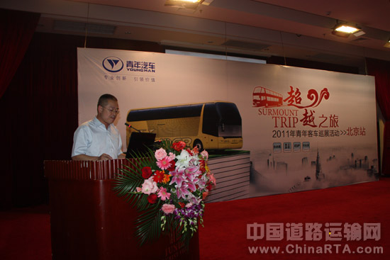 活动首先由青年汽车集团客车销售总监叶银洪致开幕辞,随后青年汽车集团总裁助理,客车销售公司总经理陈朝梁做主题发言,详细介绍了青年客车的发展现状、战略规划、品牌优势和巡展的新产品特点。最后,来自北京公交集团总经理助理徐国明、天津市长途有限公司总经理肖福祥、中旅旅游汽车公司总经理李清满在会上分享了他们长期以来使用青年客车的的体会和使用经验。