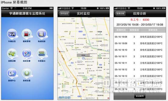 记者从宇通公司相关技术人员处了解到,宇通新能源移动应用基于GIS、GPS、3G移动通信、Apple iOS和Android智能手机/移动终端平台,开发了车辆管理的强大功能:车辆总览、能耗管理、轨迹回放、故障诊断和实时告警等车辆管理功能,方便车企管理人员全方位、随时随地、方便快捷地对车辆进行管理。宇通新能源移动应用还提供了车型展示和新闻中心两个频道,更加方便客户随时了解宇通新能源车型的各种优点,获得最新的产品信息,拉近与客户距离,让客户在弹指之间,即可与其所管理的车辆、宇通的最新车型进行快速互动。
