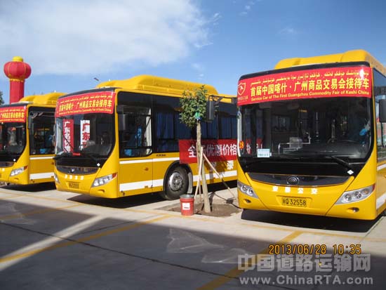 凭借有口皆碑的卓越品质,宇通100辆混合动力公交在投运服务喀什市区交通的同时,在今年6月份的“第九届中国新疆喀什•中亚南亚商品交易会”(以下简称“喀交会”)期间也被确定为指定接待用车。在这个规模仅次于“中国-亚欧博览会” 的经贸盛会举办期间,崭新的宇通混合动力公交往来穿梭,为2013年“喀交会”增添了一道亮丽的移动风景线,不仅给来自世界各地的朋友带来了便利,也让人们记住了新疆喀什这座美丽的城市。