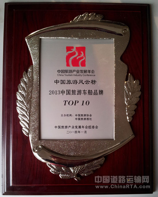 1月5日,由中国旅游协会和中国旅游报社共同主办的第三届中国旅游产业发展年会在北京举办。在本届年会上发布了“2013年中国旅游风云榜”,安凯客车凭借在旅游客车市场上的优异表现脱颖而出,荣获“2013中国旅游车船品牌TOP10”。