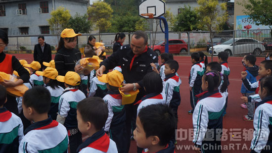 信丰交警:交管大队领导为学生们戴小黄帽