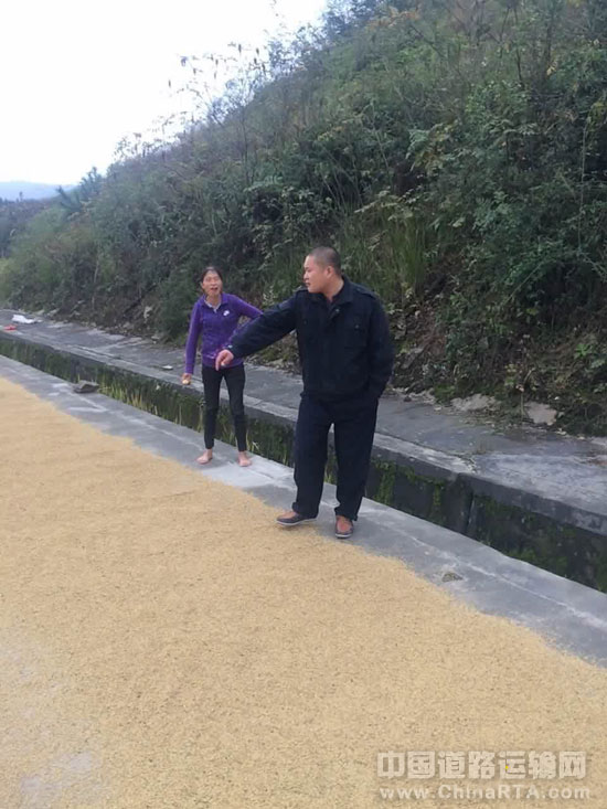 连日的强降雨过后,11月18日,辖区迎来了久违的阳光。国道319、昌厦公路沿线的一些农民朋友们为图方便,将国道当成了晒谷场,纷纷将尚未晒好的谷子拖运到公路上晾晒。此举不仅影响了车辆通行秩序,还埋下了交通安全隐患。上午10:40时许,宁都交警石上中队民协警们巡逻至昌厦公路石上镇莲湖路段时就看到一处堆晒的稻谷长达20余米,宽度几乎占据了大半个车道,把原本的双向车道变成了单向车道,有些地方甚至在路面上摆放了石头,过往车辆不得不放慢车速,互相避让缓慢通行。而昌厦公路作为辖区主要的交通要道,来往的车流量大,尤其是长途车较多。看着在道路上晾晒稻谷的村民们忙碌的身影,大家都为他们的人身安全捏了一把汗并赶紧下车去劝导、清理。在现场,民协警们一边耐心地劝导他们把稻谷搬离路面,一边齐动手清理,把晾晒的稻谷收起来并帮忙移到路边的安全地带进行整理,以保证道路畅通。待清理完毕,民协警们向农民朋友分发了《宁都交警伴您安全行》等交通安全宣传资料,耐心得向他们讲解了占道晒谷行为易使过往车辆的车轮打滑而引发交通事故,极不利于安全等危害性。