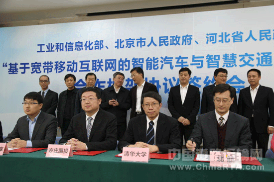 1月18日,“智能汽车与智慧交通产业创新示范区”成立发布会在北京经济技术开发区举办,工信部怀进鹏副部长、北京市隋振江副市长、河北省张杰辉副省长等领导出席。部省市共同签订“基于宽带移动互联网的智能汽车与智慧交通应用示范”框架合作协议,15家企事业单位发起设立“智能汽车与智慧交通产业联合创新中心”,4家企业发起设立北京未来车联网创新基金。创新中心将通过在北京经济技术开发区应用示范建设,突破与沉淀一批智能汽车与智慧交通关键与核心技术,带动汽车制造、移动通信、互联网等相关产业的技术与商业模式创新,推动新产品与新技术的实验验证与成果转化,形成拥有一批有核心技术与行业影响力的龙头企业加创新企业的产业生态。应用示范区将以企业为主体,共享创新资源、开放创新平台,发挥京津冀地区智能交通领域产学研用资源优势,协同创新,在智能汽车与智慧交通行业引领和示范,并带动相关产业发展。