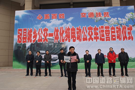 2016年1月28日,以“心系百姓,交通扶贫”为主题的“冠县城乡公交一体化纯电动公交车运营启动仪式”在山东省冠县成功举行。在该仪式上,100台中通纯电动公交车正式交付山东冠县并投入运营。这是冠县自2014年投入120台CNG公交车以来,又一次大批量的新能源公交采购,此举也标志着冠县的城乡公交发展正式进入新能源时代。