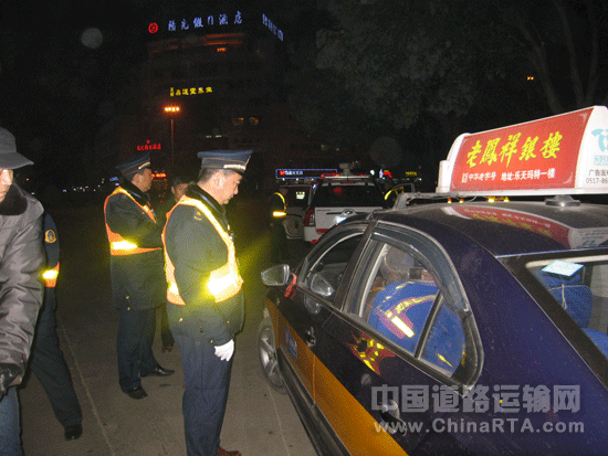 为切实维护新年初始出租车市场秩序,2016年元月5日晚,金湖县运管所组织执法人员对辖区的出租车开展车容车貌、不打计价器、驾驶员吸烟等不文明行为进行专项整顿。