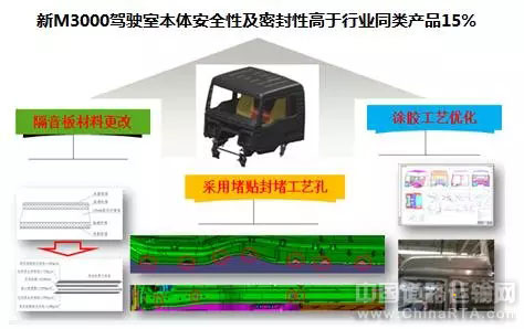 德龙新M3000驾驶室钣金厚度优于同类竞品0.2mm,安全与密封性能高于行业同类竞品15%。