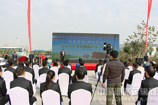 中通客车总经理孙庆民首先致欢迎辞,他表示 ,该款全球首发的竹钢营地房车是与营地开发企业联手打造的一款外形新颖、天然环保型的全新产品,此次竹钢房车的研发成功,标志着中通在房车领域乃至整个行业都做了一次新技术、新工艺、新材料的突破。