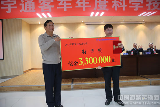 10月25日,宇通客车2015年度科学技术表彰大会在宇通工业园隆重召开,大会对公司2015年在产品、技术、工艺、质量等各方面代表性的创新项目予以表彰,其中最高奖项单项奖金高达330万元!