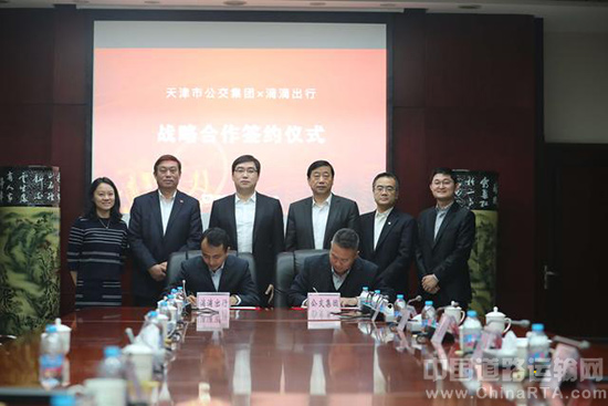 12月13日下午,天津市公共交通集团(控股)有限公司与“滴滴出行”APP的开发者和所有者北京小桔科技有限公司举行战略合作签约仪式。根据协议,双方将在公交信息实时查询服务、大数据公交线路规划技术咨询以及公交服务质量评价上展开深入合作,在方便市民公共出行的同时,助力天津市“公交都市”示范工程建设进程。北京小桔科技有限公司董事长兼CEO程维和天津市公交集团董事长于秉华、总经理郭智等双方高层出席了本次签约仪式。