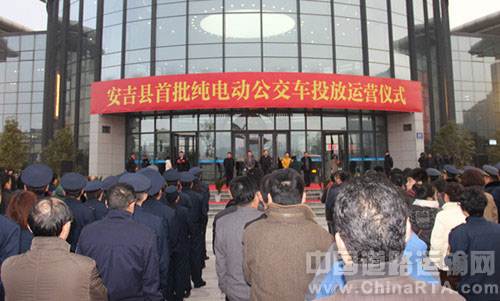 12月22日,安吉县首批纯电动公交投放仪式在客运中心站前广场举行。县政府办副主任许超主持投放仪式,县交通运输局局长叶新安致辞,长运公司总经理张超代表公交企业表态发言,县委常委乐叶俊宣布首批纯电动公交投入运营。县人大、县政协领导及县交通系统干部职工代表、公交企业代表近140人参加投放仪式。