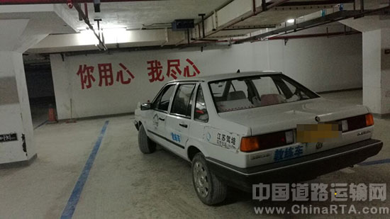 执法人员经过一番转折,在该小区二期地下车库入口处看到“首家室内驾校训练场”横幅标语。执法人员向里走去,眼前一片漆黑,借着手机灯光转弯步行约50米便看到了这个地下室驾校的真面目,一台车身标着“淮安樱花驾校”的教练车,一名教练,四五名学员,地面划着黄色库线,其中一名女学员借着灯光正在练习倒库技术。