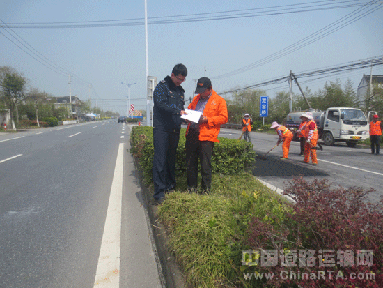 4月8日,泰兴公路站路政员在巡查至S229线132K处时,发现养护单位正在对S229线进行小修保养,路政人员当即对现场的安全标志设置情况进行核查,发现隐患处,要求养护单位立即整改,以确保施工现场及来往车辆的安全。