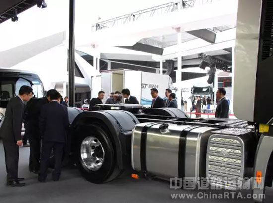 而此次展出的创虎440马力6*2甩挂运输车也成为了此次车展现场的焦点,其高贵经典的黑色外观,不但让整车看起来霸气十足,还给现场观众带来了一丝神秘色彩。据小编了解,此款是为了甩挂运输行业而精工制造,其不仅继承了创虎独有的动力性能、燃油经济性,舒适性和耐久性能也十分突出,此车对于经营“甩挂运输”业务的用户来说绝对是一大福利。
