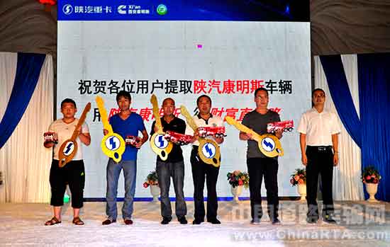 活动中,陕重汽销售公司太原区域总经理刘建刚先后为山西大客户,来自左云县东卫运输有限公司和内蒙古凯力达一专用车有限公司的5位客户交付象征开启陕汽康明斯致富大门的金钥匙。用陕汽康明斯,行财富直通路!