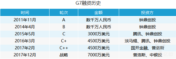 2017年12月18日,智慧物联网公司G7宣布,已获得现代物流设施提供商普洛斯(以下简称“普洛斯”)与中国银行全资持有的直接投资业务平台中银集团投资有限公司(以下简称“中银投”)总计7000万美元的战略投资。