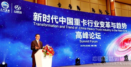 公司常务副总经理施轶才在高峰论坛上致辞中说:中国进入新时代,经济增长模式由高速增长转为中高速增长,随着国家治超环保法规的推进,特别是新的GB7258(《机动车运行安全技术条件》)标准将在2018年1月1日实行,对车辆生产制造进行更详细、更有针对性的约束和管理,同时随着互联网技术发展和物流行业改革,必将对卡车行业引起重大影响。通过本次高峰论坛,将聚集大家的智慧和力量,为未来重卡行业以及上汽红岩发展探讨新的发展思路,加快创新发展步伐。