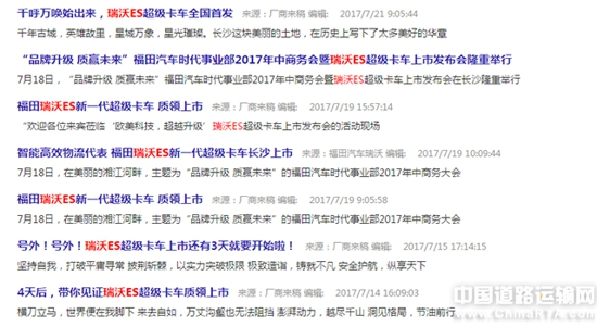 卡车行业权威领袖网站——卡车之家,运用大量版面,针对瑞沃ES超级卡车上市发布活动,从前期预热到震撼上市的全过程、全时期、全角度进行了深入报道,将福田汽车集团“超级卡车计划”品牌战略、瑞沃ES产品性能卖点等方面进行深入分析,跟踪发声。