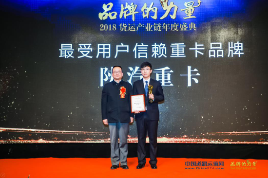 陕汽旗下产品德龙X3000黄金之星车型备受用户好评,特别是产品搭载潍柴动力、法士特变速箱及汉德车桥组成的黄金动力总成,让车辆在动力输出、油耗成本及售后保养方面具备得天独厚的优势,为用户带来最省力、最省油、最省心的用车感受,助力用户快速走上致富路,赢得了用户的广泛信赖与认可。通过9个月的调研和采访,收集用户意见和评价,经品牌力量组委会评选,陕汽重卡荣获品牌力量2018货运产业链年度盛典“最受用户信赖重卡品牌”称号。陕汽X3000黄金之星则荣获“干线物流推荐车型”奖。