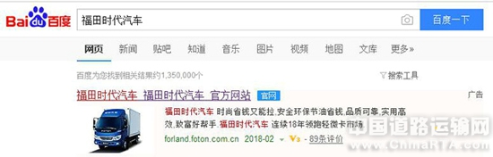 直达方式4:电脑百度搜索“福田时代汽车”,点击进入
