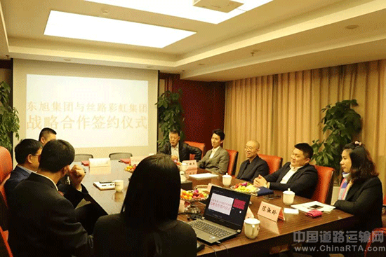 基于共建旅游交通及城市公共交通出行新模式,2018年4月9日,北京丝路彩虹集团与东旭集团在东旭大厦达成战略合作,并举行了签署仪式。北京丝路彩虹集团董事长沈海东、副董事长王鹏、副总裁张锋、陈淑玲及东旭集团副总裁王建强、光电产业发展事业部副总裁刘凯等出席签约仪式。