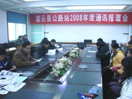 1月23日,灌云县公路站组织全站人员召开2008年度通讯报道会议,提前布置2008年度的宣传工作。会上站主要领导要求全站职工提高思想认识,把宣传工作放到重要位置来抓,及时把全站发生的新人新事向外宣传,以提升单位的整体形象,为全年的文明创建工作开了个好头。