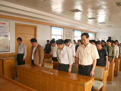 2008年5月19日14时28分起,河口区交通局局长、党组书记于跃亮率全体干部职工在四楼会议室举行仪式,为四川汶川大地震遇难者默哀3分钟,表达对四川汶川大地震遇难同胞的深切哀悼。